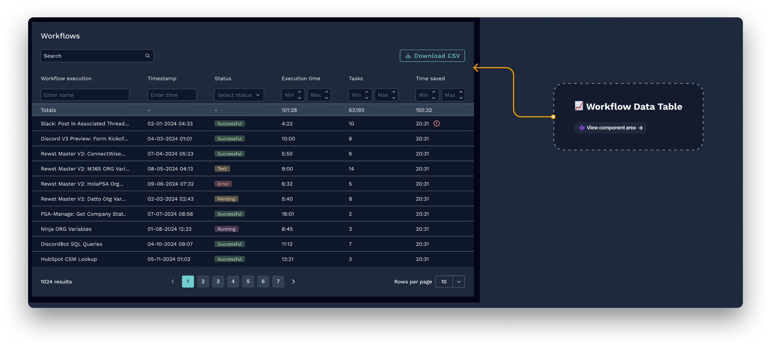 Instant clarity:workflow performance, time saved, and integration health at a glance